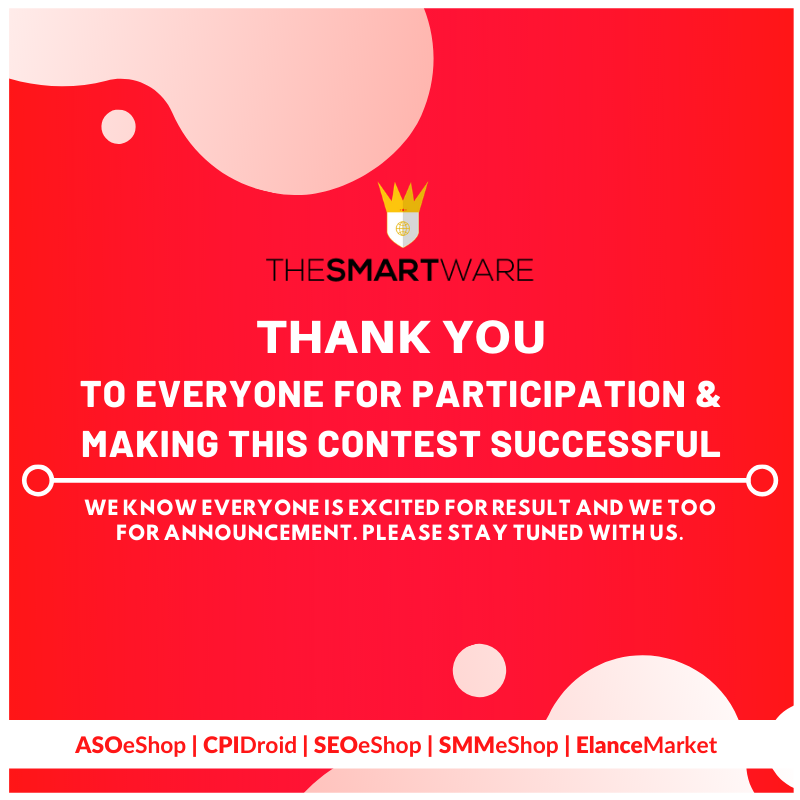 #ThankYou to everyone for Participation and Making this#Contest#Successful. We value your time you pull out for this contest.#Winner will be announced soon! Please stay tuned with us. . . .#TheSmartWare#Giveaway#giveawaycontest#free#win#SEO#SMM#FridayFeeling#SOONpic.twitter.com/HoxfKsN36p