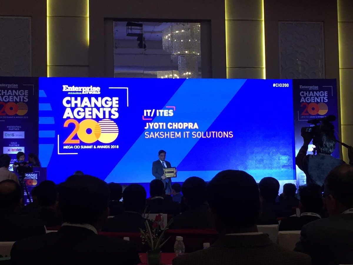 #ChangeAgents200 at the Red Carpet Award Ceremony in IT Category by@EntITworld Thank you@sakshemIT team for receiving the award on my behalf. Congratulations and thanks to the entire team of#SakshemIT and#Glaze for making this happen. pic.twitter.com/iyvVYmIhQW