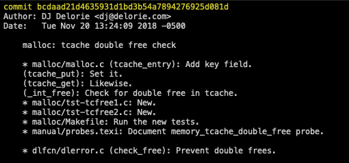 Now the tcache (thread cache) mechanism check for double frees