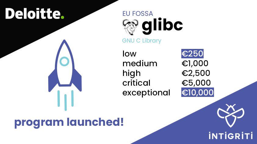 #glibc - get up to €10,000 in#bugbounty prizes https://go.intigriti.com/glibc#BugBountyTip#infosecurity#ethicalhacker@EU_DIGIT@DeloitteBounty@intigriti@bugbountyforum@DeloitteEUpic.twitter.com/oFBJhNWT07