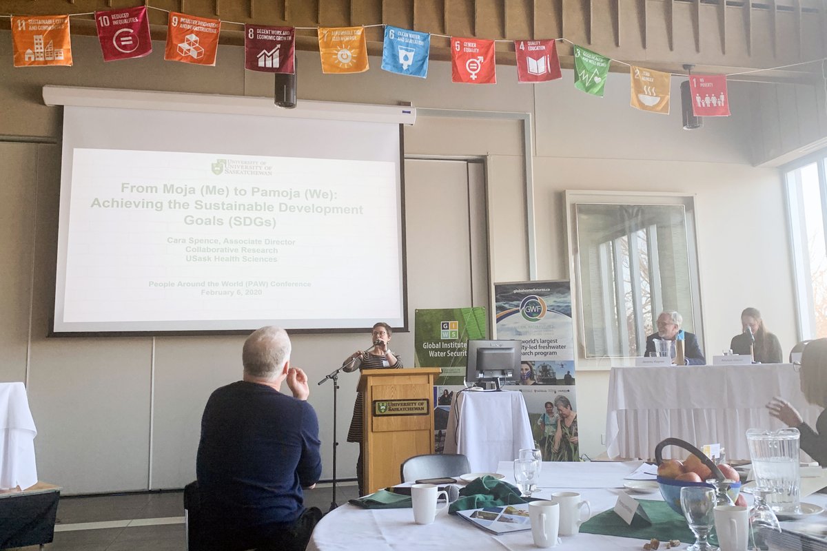 #GlobalGoals at PAW 2020! Yesterday@usask, our own Cara Spence,#USaskHealth Sciences Associate Director of Collaborative Research, presented "From Moja (Me) to Pamoja (We): Achieving the#SDGs"#UniversityTheWorldNeedspic.twitter.com/F7LnThr7ih