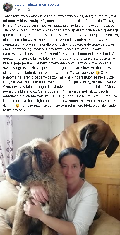 #GOGH#GlobalOpenGroupforHumanity Ewa Zgrabczyńska- zoolog: "A teraz pocałujcie Misia w d...", a ja odpalam 1 marca demokratyczny ruch oddolny dla ocalenia zwierząt, GOGH (Global Open Group for Humanity).pic.twitter.com/MajuS9OJGh