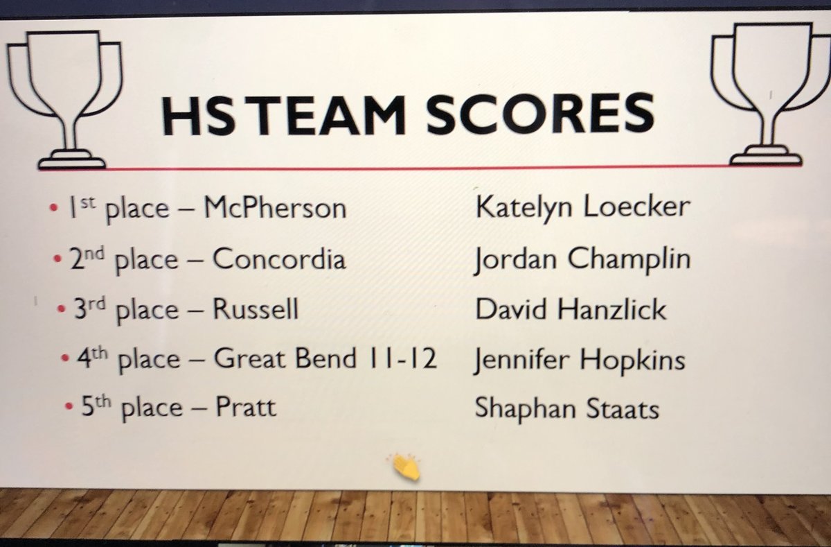#Congratulations to the@USD418@MHSBullpups@MHSJAGK program who took the top spot in our State Career Development Conference today. I am so proud of@CoachLoeck & her students Alex Eagle, Emma Paramore & Kyra Byrd