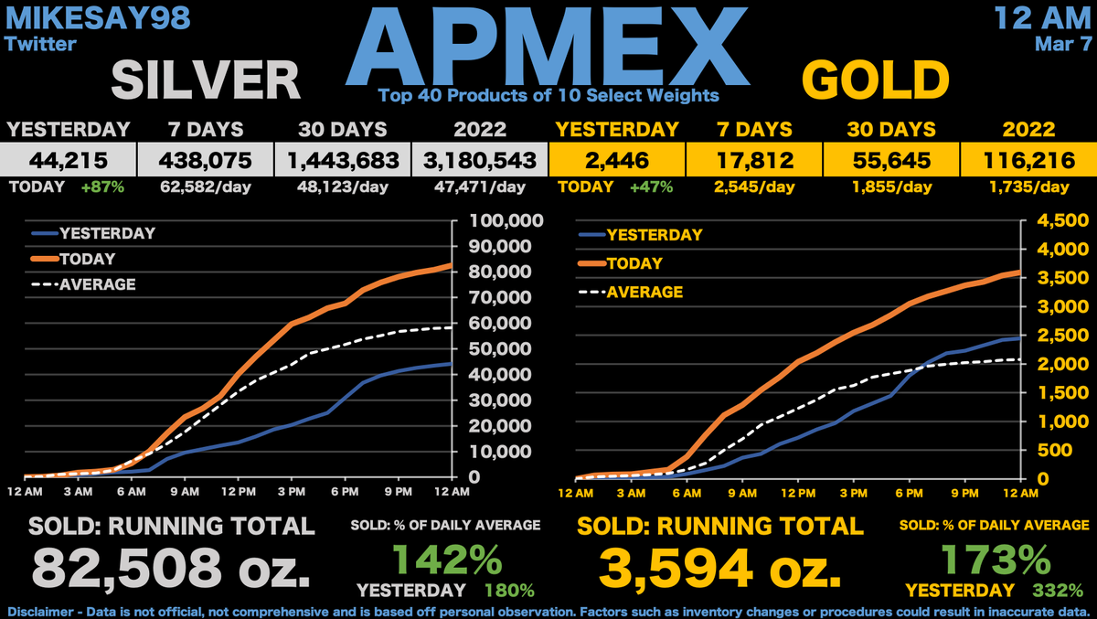 APMEX MONDAY FINAL TALLY Pretty good day. See you all tomorrow!