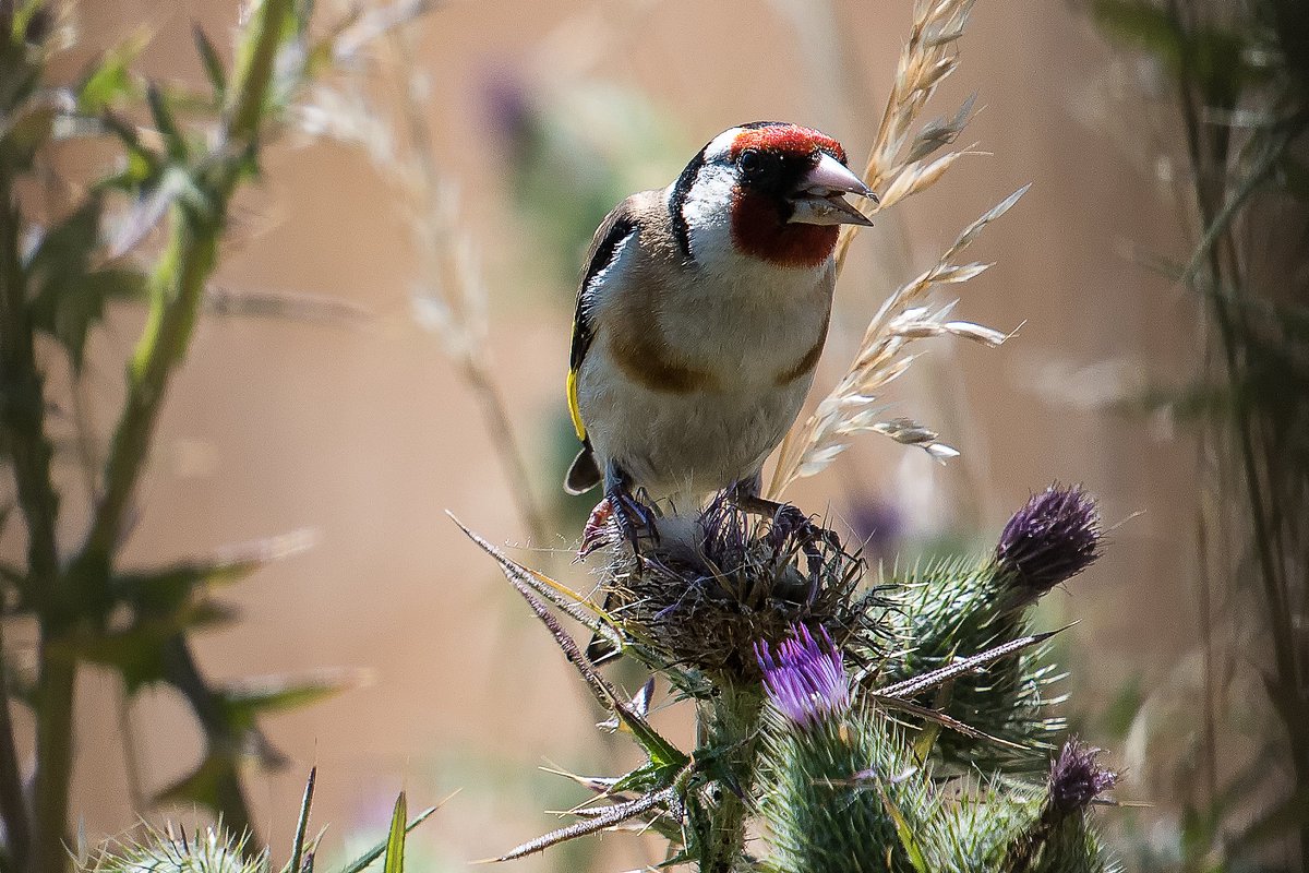 A Goldfinch enjoying the wildflower seeds in the Lake District countryside.