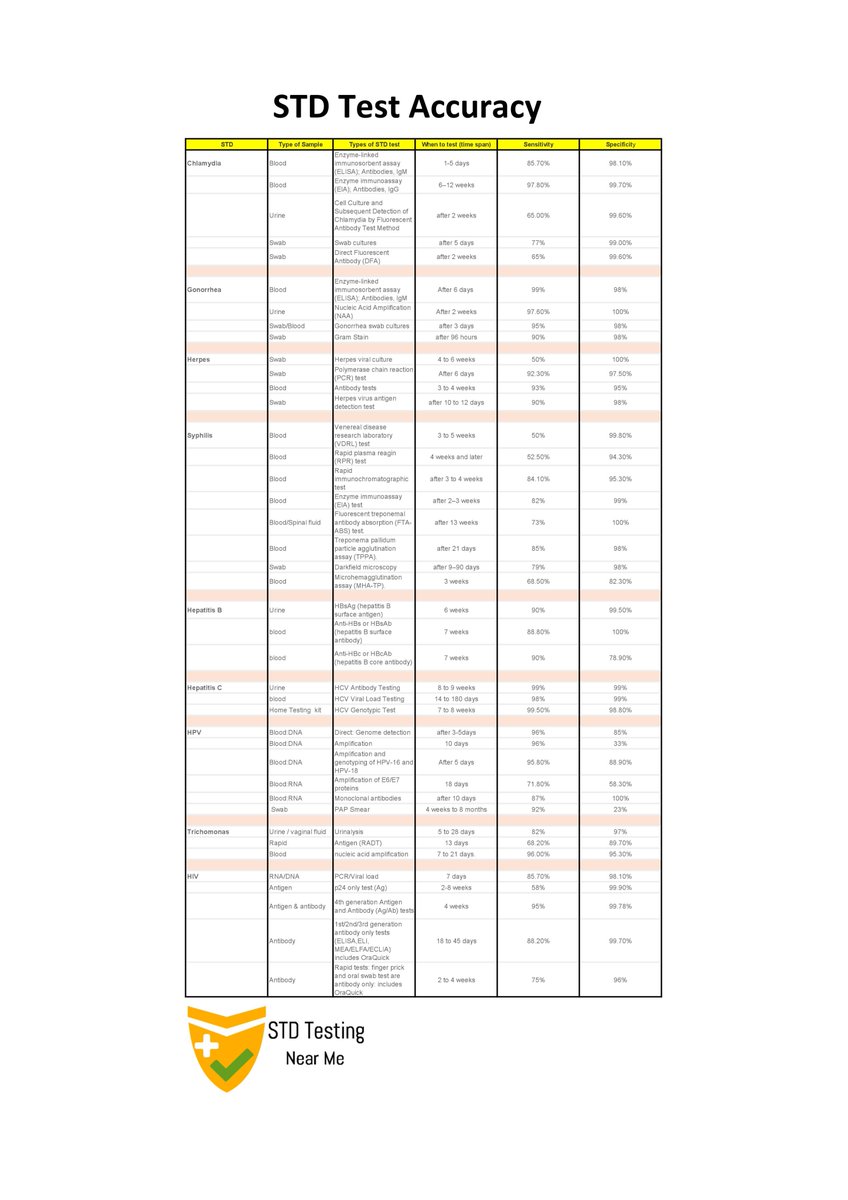 How accurate are different STD tests? When do they give most accurate results. STD accuracy table inside. https://stdtestingnearme.org/how-accurate-are-std-tests-check-out-the-std-test-accuracy/ …