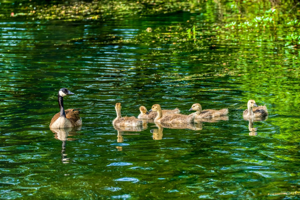The former gosling kindergarten & now gosling school picking lunch along the big lake.