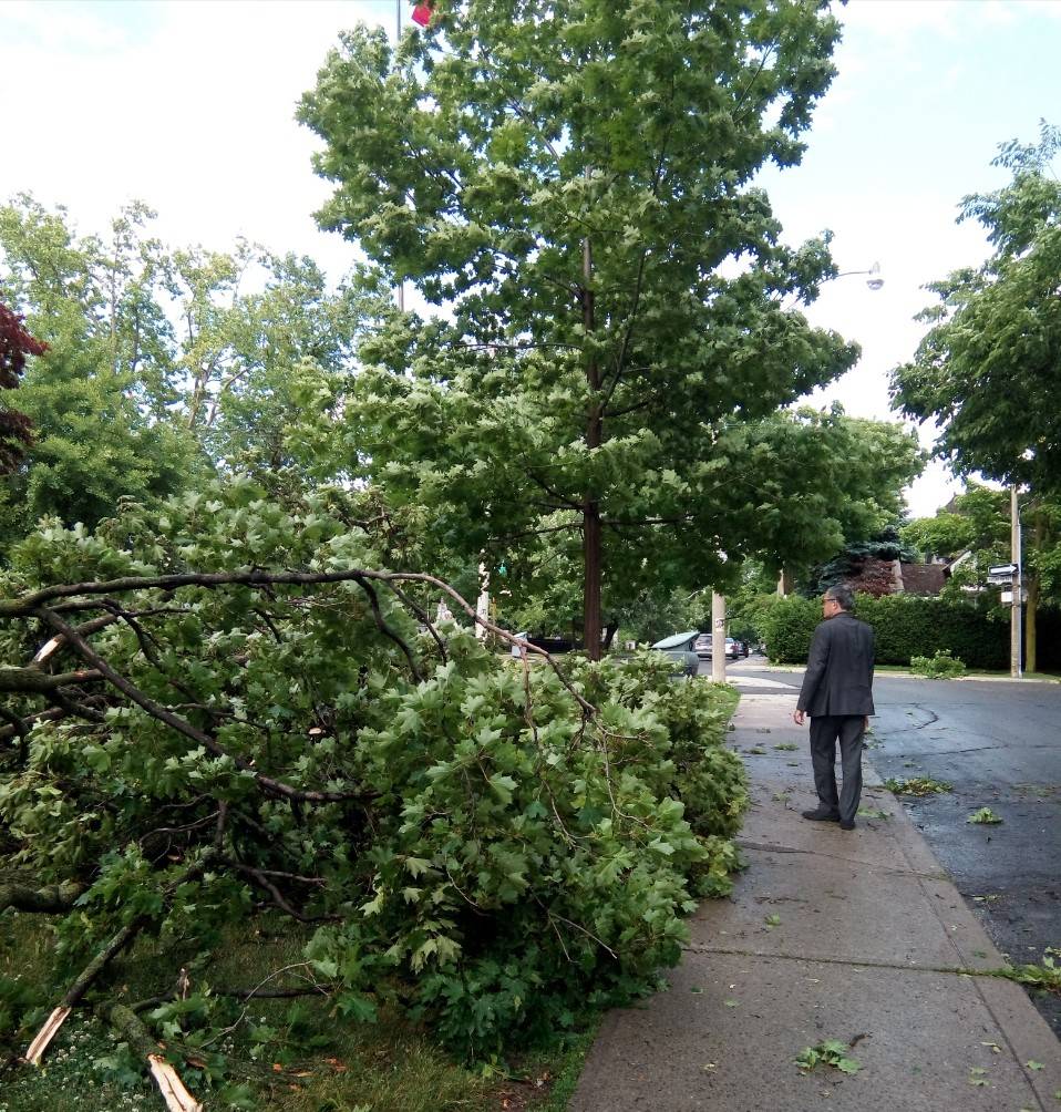 The Rev Canon Peter Walker inspecting after the June 13th storm, where we were awed by the loss of giant limbs from our 100 year old+ oak tree. The higher they are..