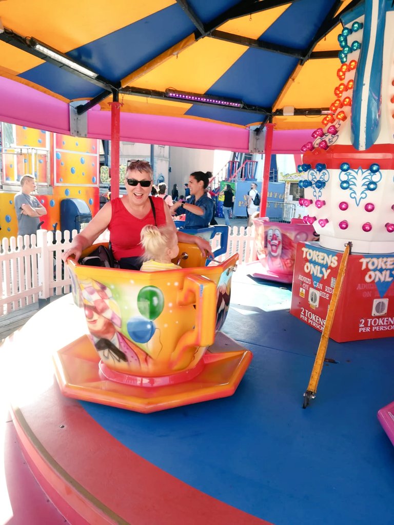 Brighton Pier yesterday in all its colourful glory, Silke and I enjoying the rides. We walked from the