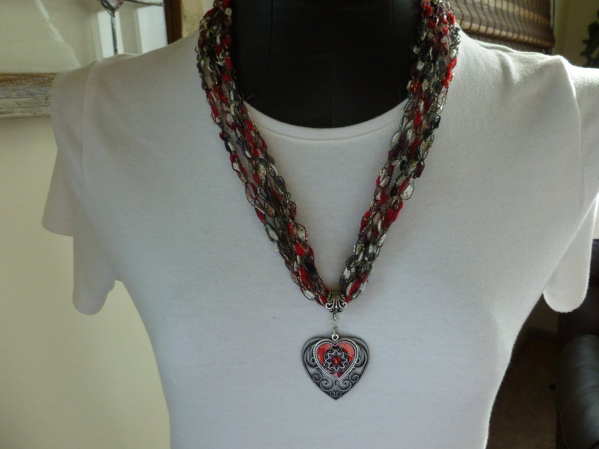 Crocheted Laddder Yarn Necklace w/Pendant http://tuppu.net/9a0fe02a