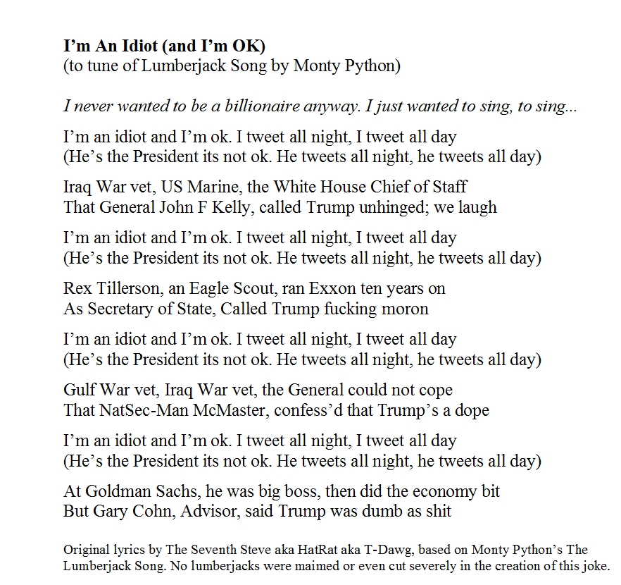 #greatandunmatchedwisdom Let's ask Republicans who worked with you. This is what they say of Trump Priebus: he's an idiot Mnuchin: an idiot Kelly: he's unhinged & an idiot Boehner: a disaster McMaster: a dope Bannon: 11 year old child Cohn: dumb as shit Tillerson: a fucking moron pic.twitter.com/22wLhJUq9Q