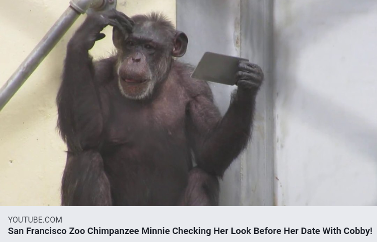 San Francisco Zoo Chimpanzee Minnie, Checking Her Look Before Her Date With Cobby! Pretty Girl!