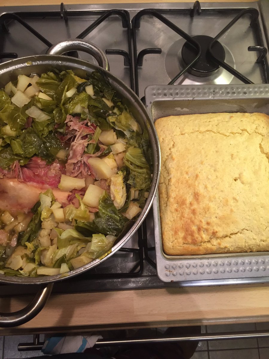 #collards here in#London, where they are “spring greens.”#cornbread#greens#cooking#southernpic.twitter.com/g7ya2olMoS