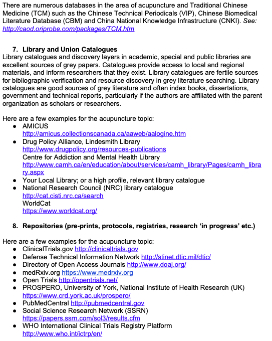 #acupuncture". Key points: 1. 'Scope' out a topic, get clues from relevant peer reviewed papers 2.#Greylit searches emerge from clues in early scoping 3. Consider 8-10 steps/source scope 4. Ask#greylit search expert for advice#medlibspic.twitter.com/wBGhhElZ0h
