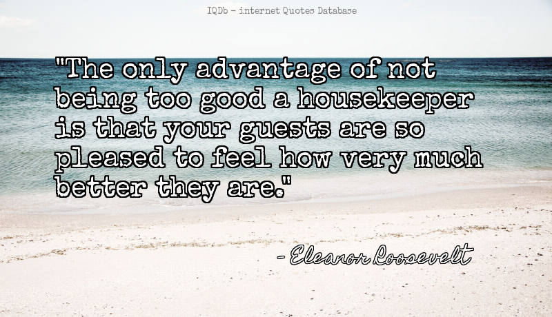 The only advantage of not being too good a housekeeper is that you...