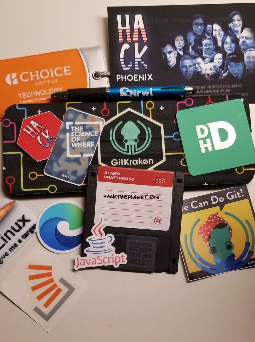#halfstack schwag! I didn't even grab everything. So curious what kind of master hacks are on that floppy! Love that JavaScript sticker! pic.twitter.com/g2osQwOfPV