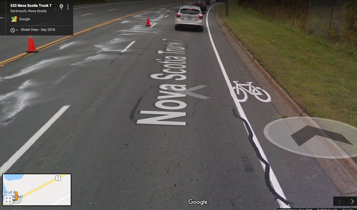 @TranBC new design guide VS example of what we have here in#Halifax: This section of road in#Dartmouth has a speed limit of 70 km/hr (mind you vehicles often travel upwards of 80 km/hr). The non-protected bike lane along 1/npic.twitter.com/JAJp9nSq0g