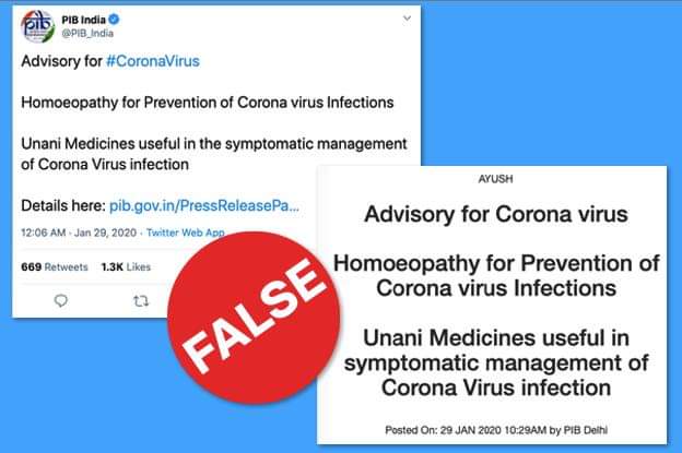 Buzzfeed identified 25 fake news about Coronavirus around the world. Only one of them has been shared by a Government agency - the Press Infomation Bureau (PIB) of India.