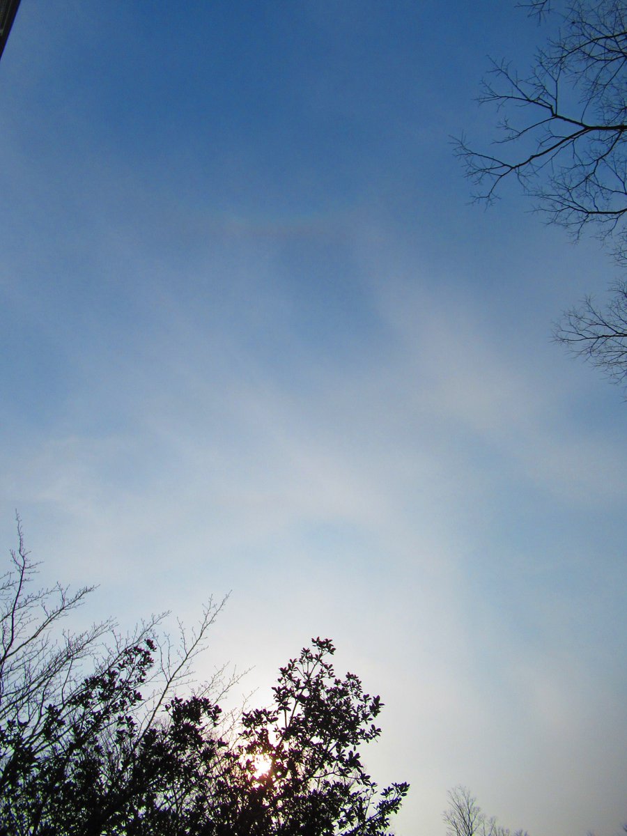 節分の今朝空 日の出前からお日さまの左側に出ていた虹色のかけら 朝虹かと思っていたけれど、どうやら46度ハロのかけらっぽいみたい 綺麗な虹色が長いこと出ていました