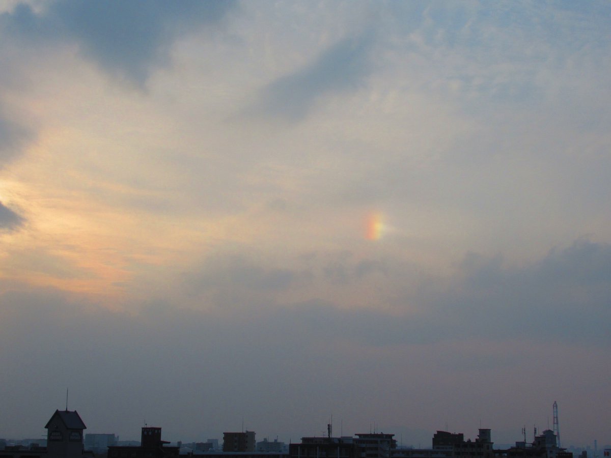 上部タンジェントアーク @ 松阪港 16:45頃 暈も天頂環も見えなかったけど、通りすがりの雲が本日唯一の虹色を見せてくれました。 V字になっているような気もしますが…? 本当は彩雲の出現を期待してたのですけどねぇ。