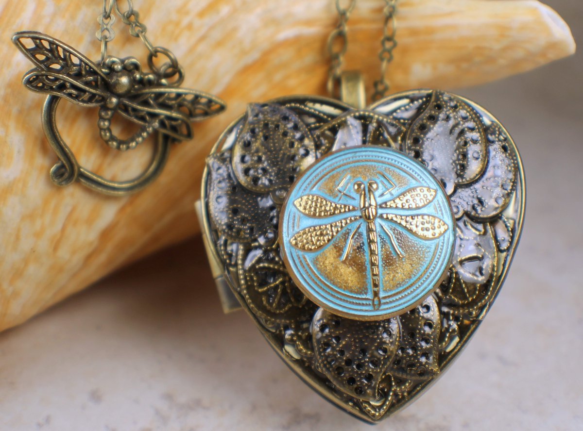 Czech Glass Dragonfly Music Box Locket, Heart Music Box Pendant, Music Box Jewelry, Musical Photo Locket, Music Box Necklace https://seethis.co/GyyM3r/