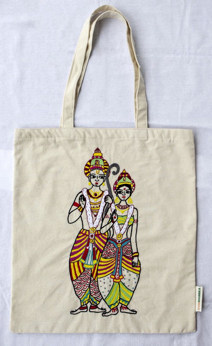 @MyBookJacket Ram Sita Vivah. Shortly going for production of these Tote bags. Hand embroidered.#Handmade#Embroiderybyhandpic.twitter.com/sgxI5lcVpv