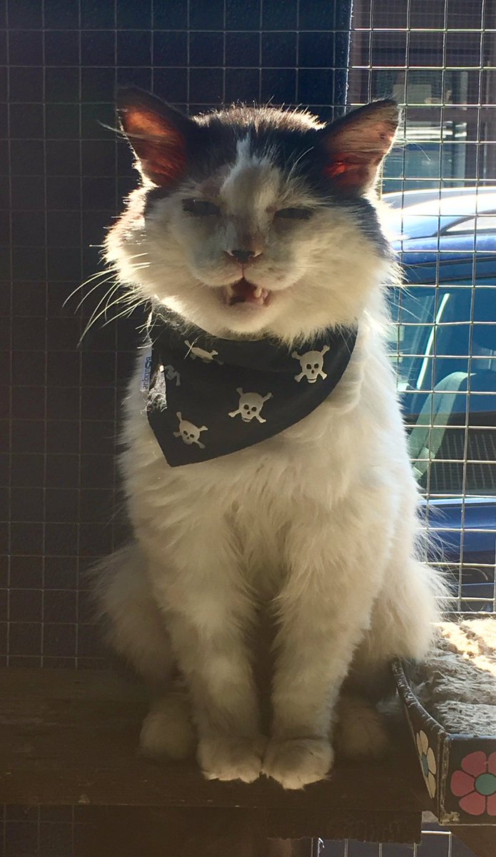 He's still on medication for his skin at the moment so won't be ready for homing for another 5-6 weeks, so he's enjoying sunbathing in one of the outside pens #handsomecat pic.twitter.com/6nMiBYoitE