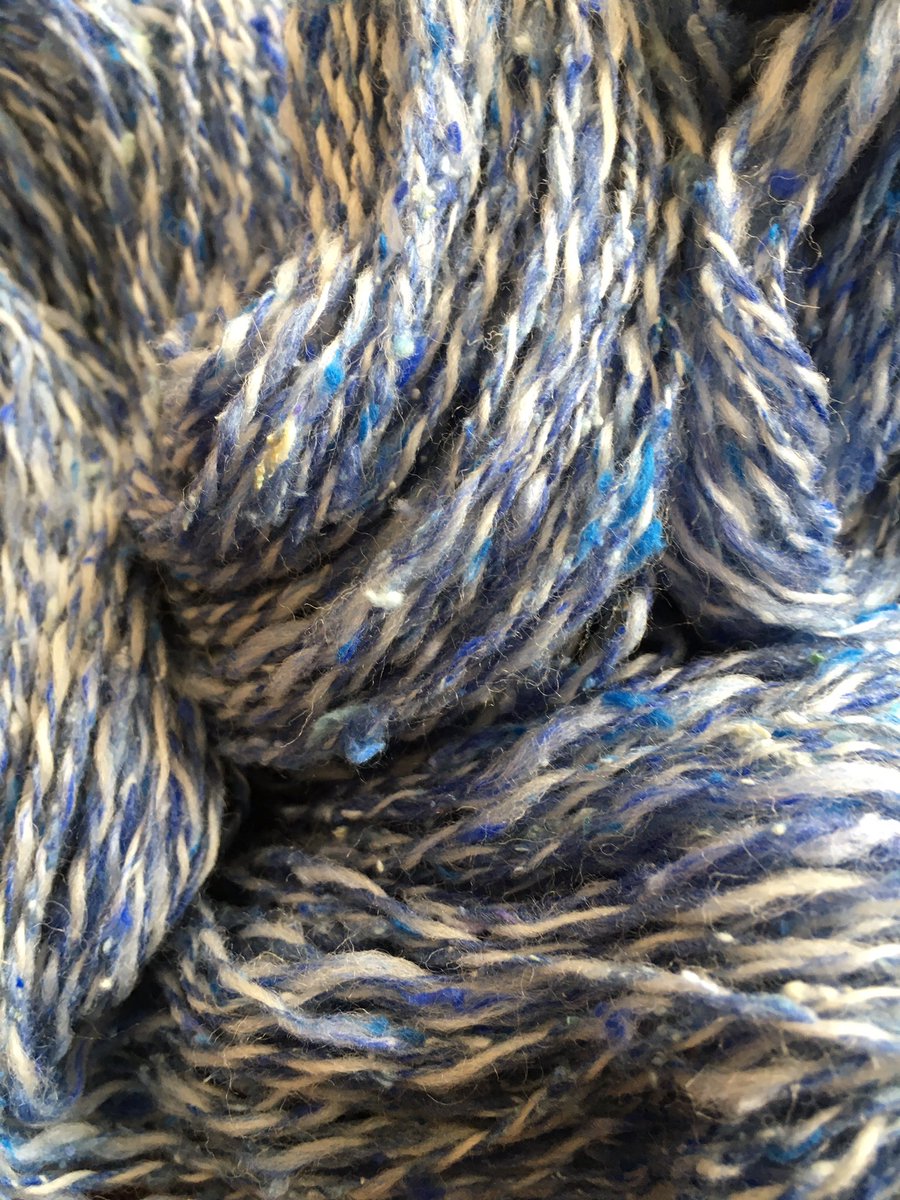 Recent skeins....moving towards spring colours! The pink is 70/30 merino/silk, while the tweedy blue is wool/viscose.