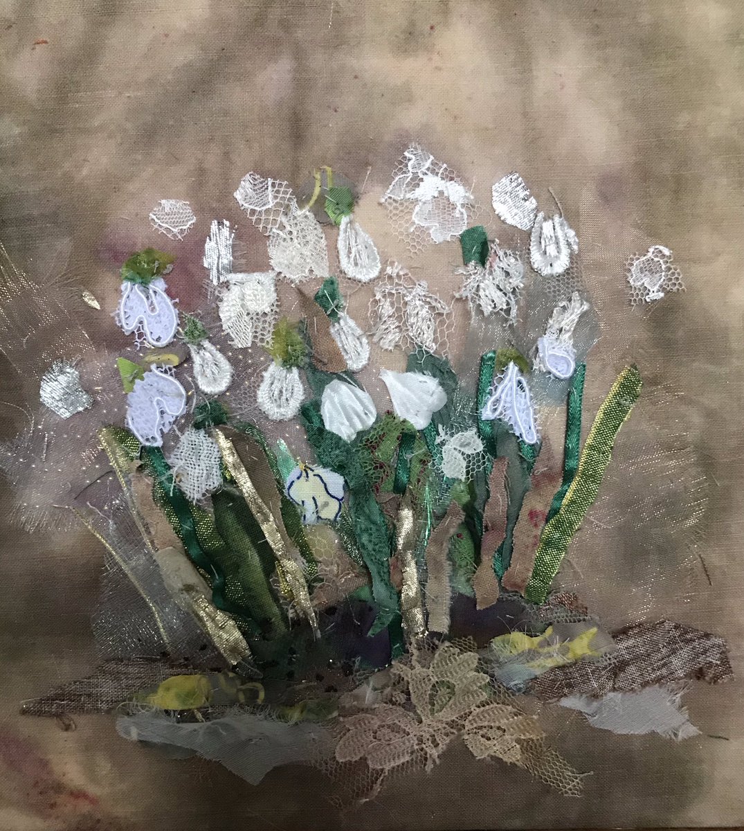 #snowdrops and a detail so you can see the layers of fabrics I’ve used.#textileart#textiles#handstitched@TheEmbroidered@_houseandgarden#gardenersoftwitter#winter#flowerspic.twitter.com/swt8FQi7Ij