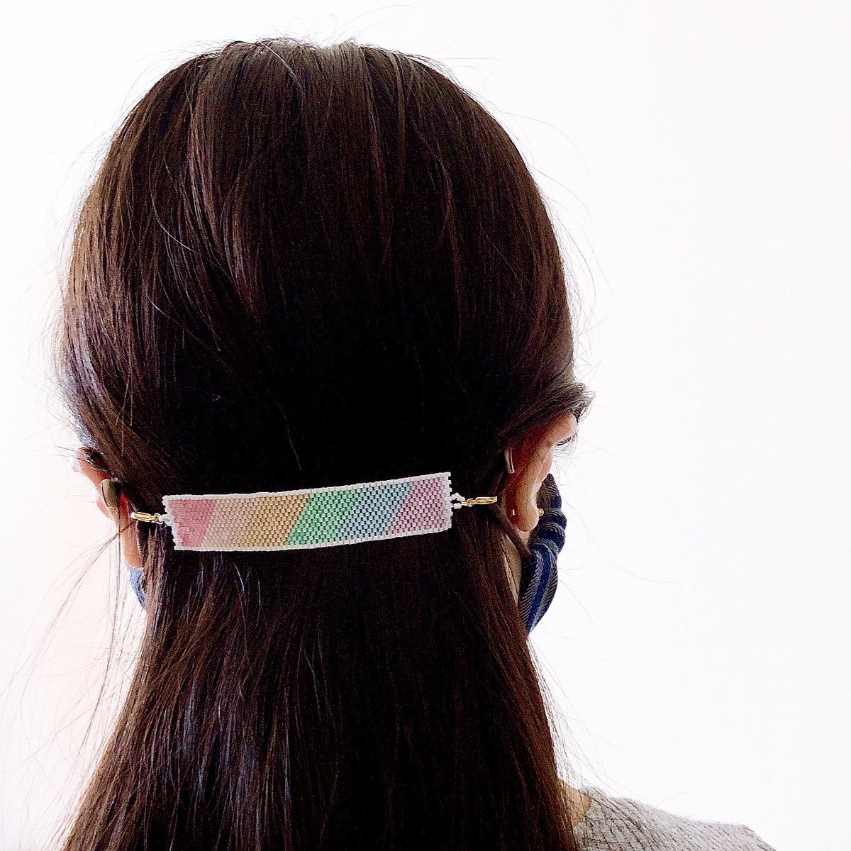 早朝に目が覚めてしまったので、マスクレットを編んでいました(*^^*) 実物はこれより2cmほど長くて使いやすいです、パステルカラーとブライトカラーの2種類! 5月14日(土)の