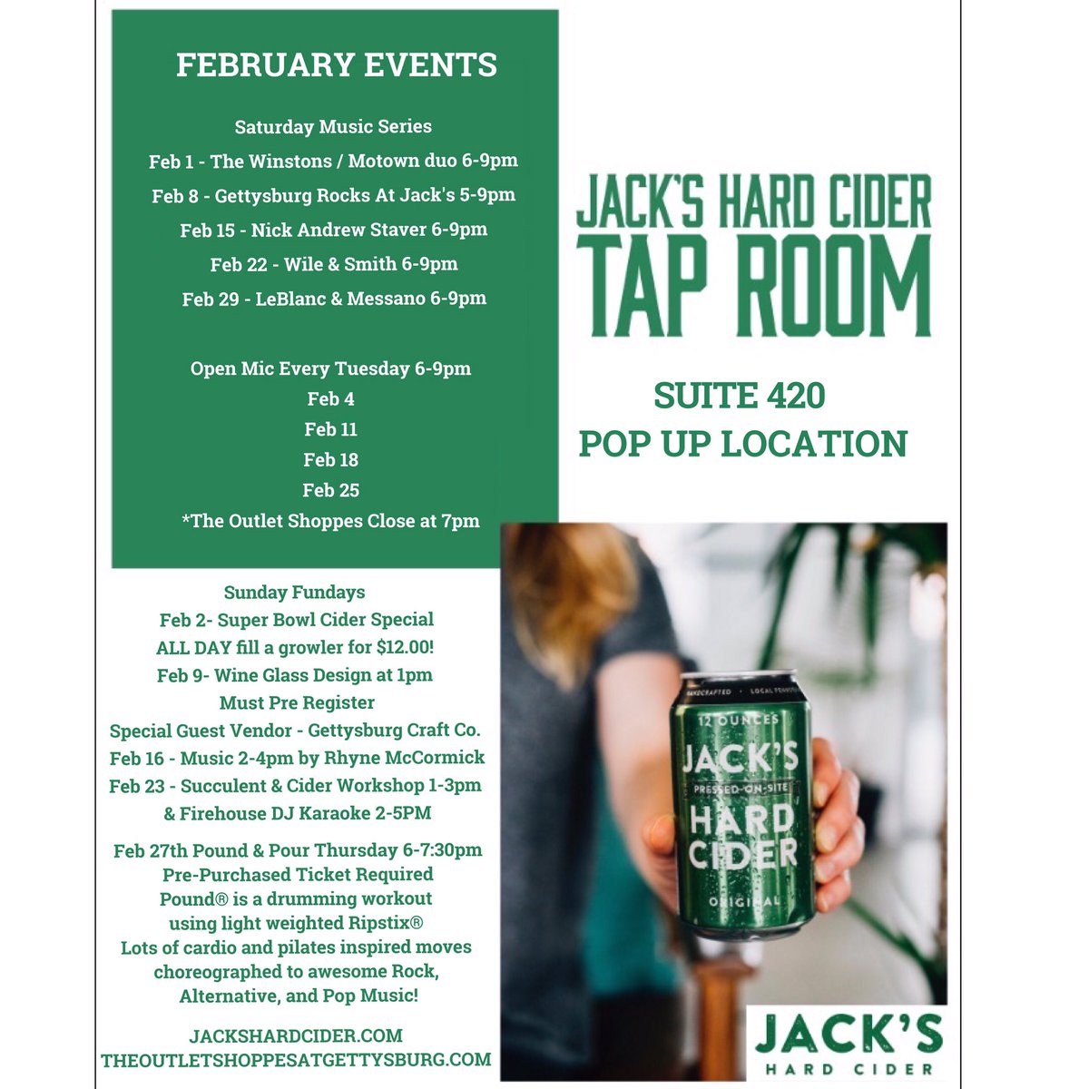 #gettysburgoutlets#gettysburg@jackshardcider#jackshardcider#hardcider#ciderlover#wine#beer#livemusic#openmic#fun#february#eventspic.twitter.com/yfByXX3E7p