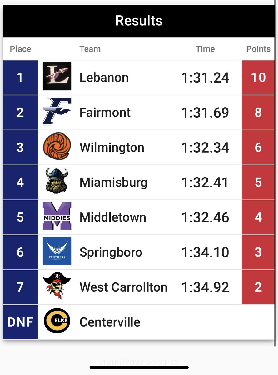 Boys 4x200 Relay of Ben, Dasan, Jerod, and Kam are moving on to next weeks OHSAA Regional Championships with a time of 1:31.69