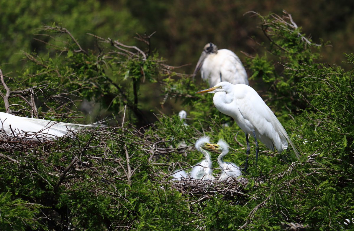 #HarrisNeckNWR yesterday. The tricolored herons are still building nests, the wood storks and anhingas haven't hatched, but the great heron chicks are already lively. Love these gangly, fluffy dino babies.#birdphotographypic.twitter.com/WFtnNIXDGx