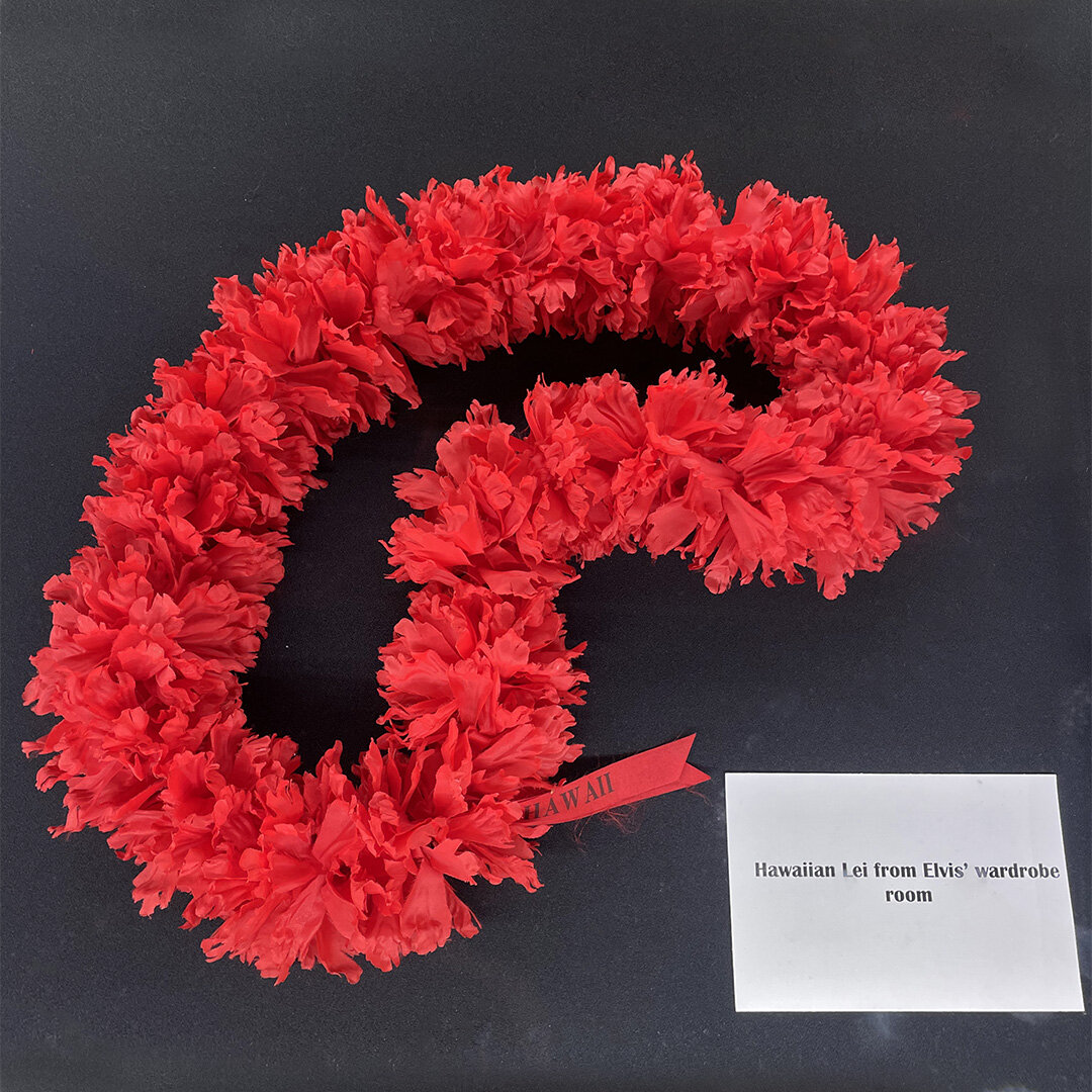 This is the Hawaii Lei from Elvis’ wardrobe room from “Aloha in Hawaii.” View other artifacts from significant events of Elvis; career at Elvis The Entertainer Career Museum at