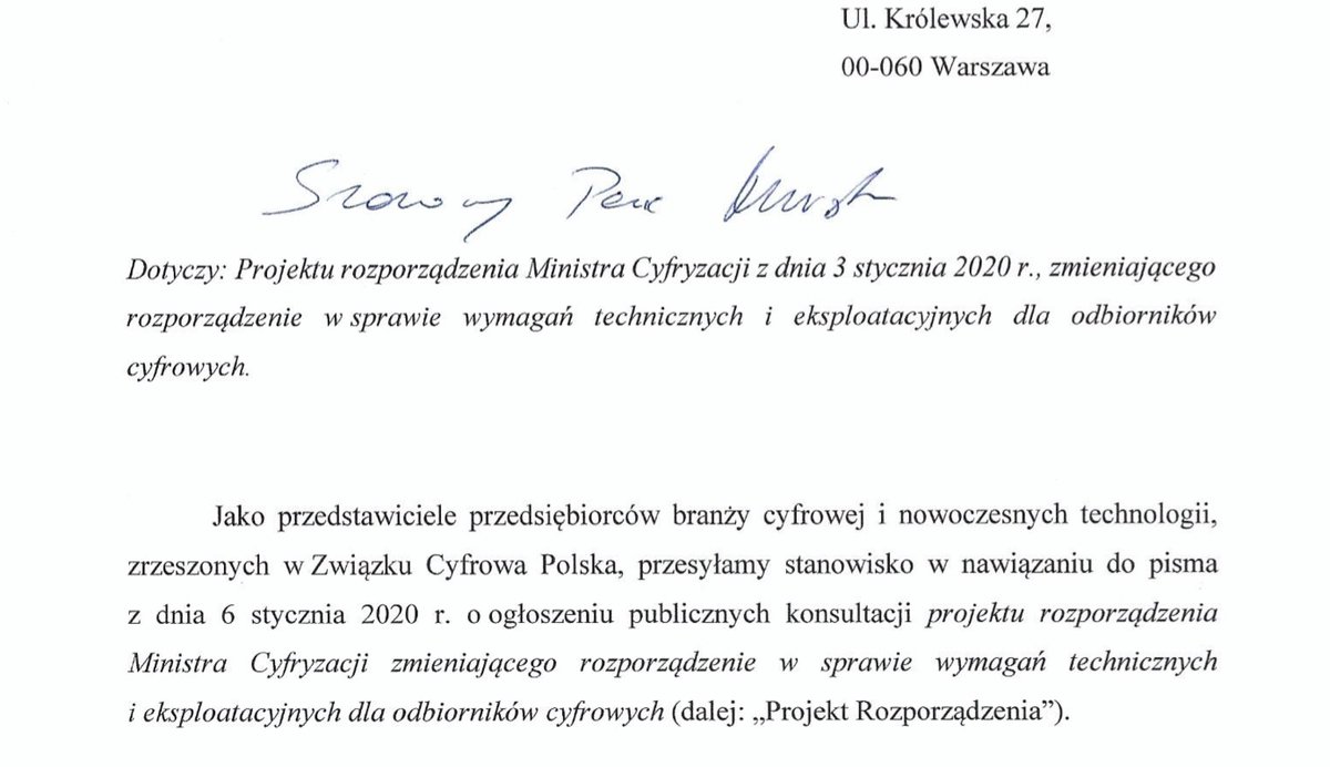 Związek Cyfrowa Polska przekazał swoje stanowisko do