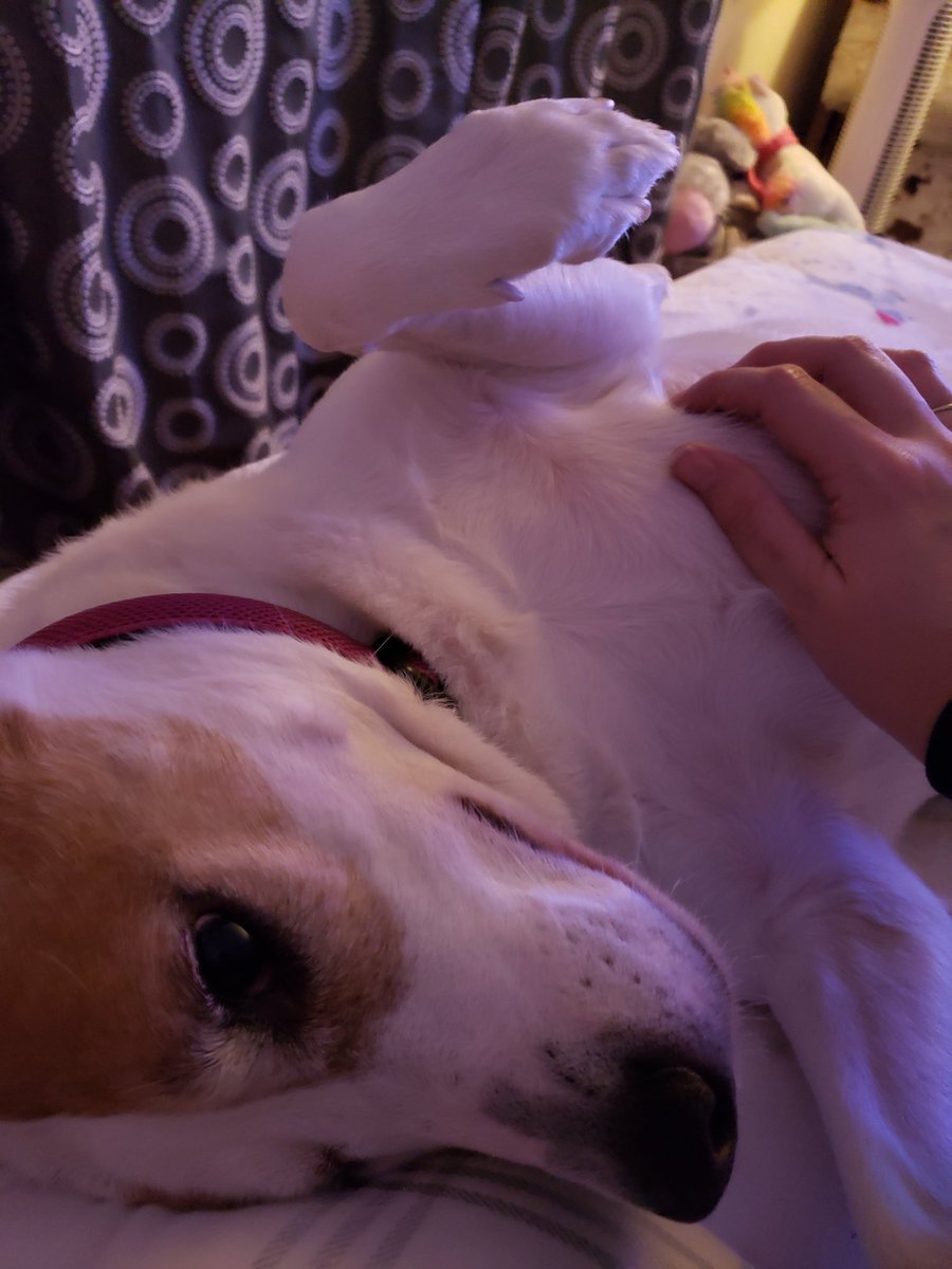 Making sure mommy keeps rubbing the tummy,