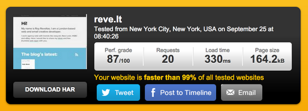 "Your website is faster than 99% of all tested websites" -