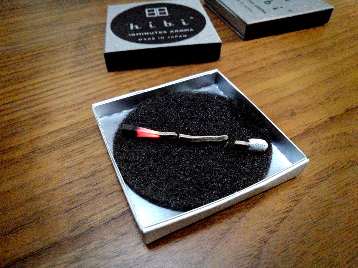 #OrigmiSensei でゲットした煙を焚いて チルしてるなう。#hibi のマッチ型お香。 着火して10分ぐらい香る。 これ一つでお手軽に お香が楽しめる優れものだ。 OrigmiSensei なら 沢山の香りを取り扱ってるぜ! 是非、遊びに行ってみてよ。 コーヒーも美味しいよ。 https://m.facebook.com/origamisendai/ pic.twitter.com/legjAjjRYT