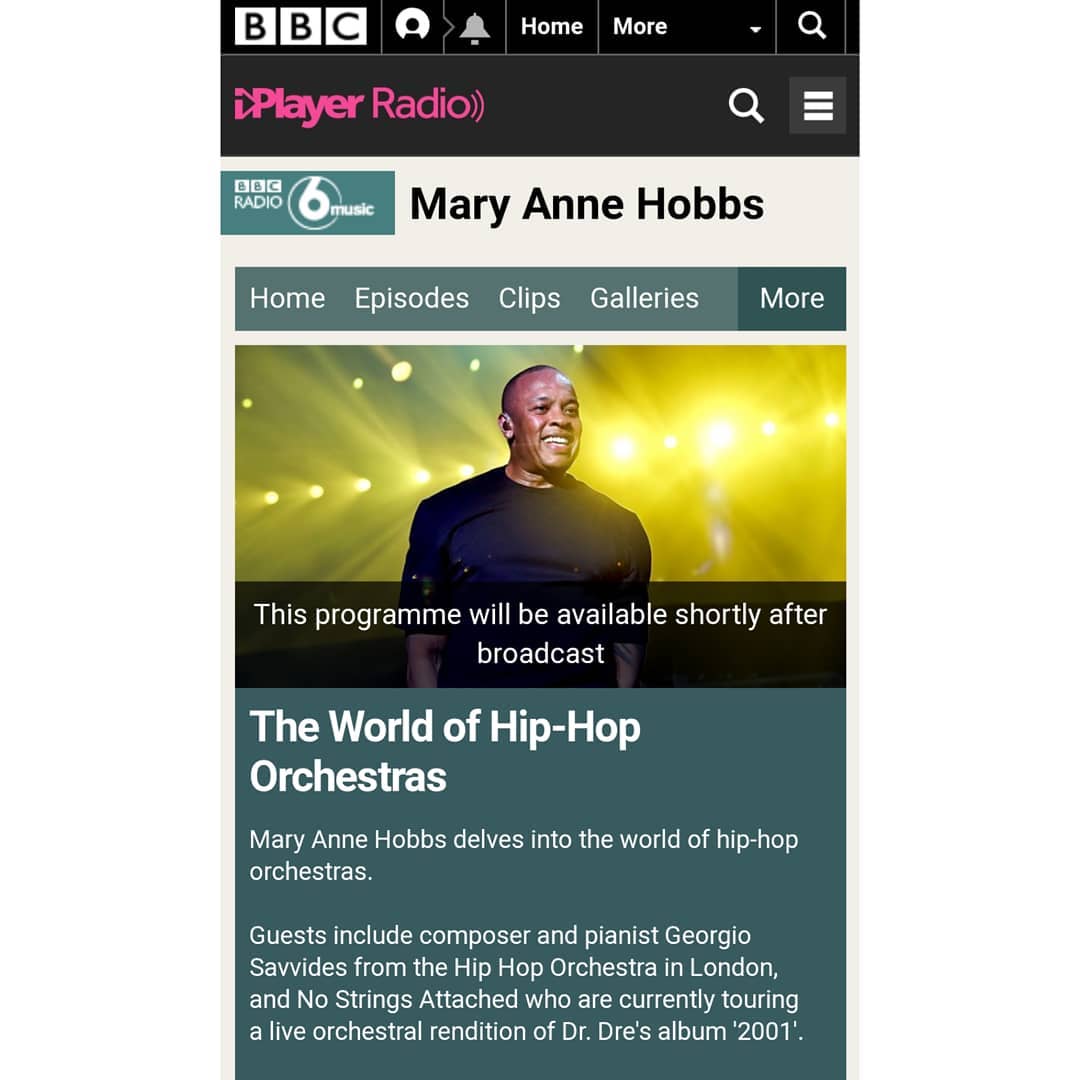 @Helen_ECW for featuring us on the amazing@maryannehobbs show on@BBC6Music this morning, it means so much Here is the original link: https://www.bbc.co.uk/programmes/b0b7hq6m …#BBC#BBC6#TheHipHopOrchestra#MaryAnneHobbs#Fusion#HipHop#Classicalpic.twitter.com/B44Zun69EW