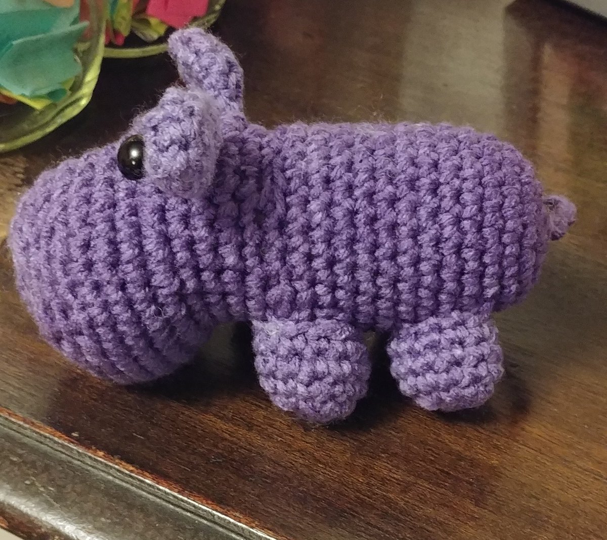 A peaceful, playful, purple hippopotamus. Finished and already adopted, and well loved, by his owner.