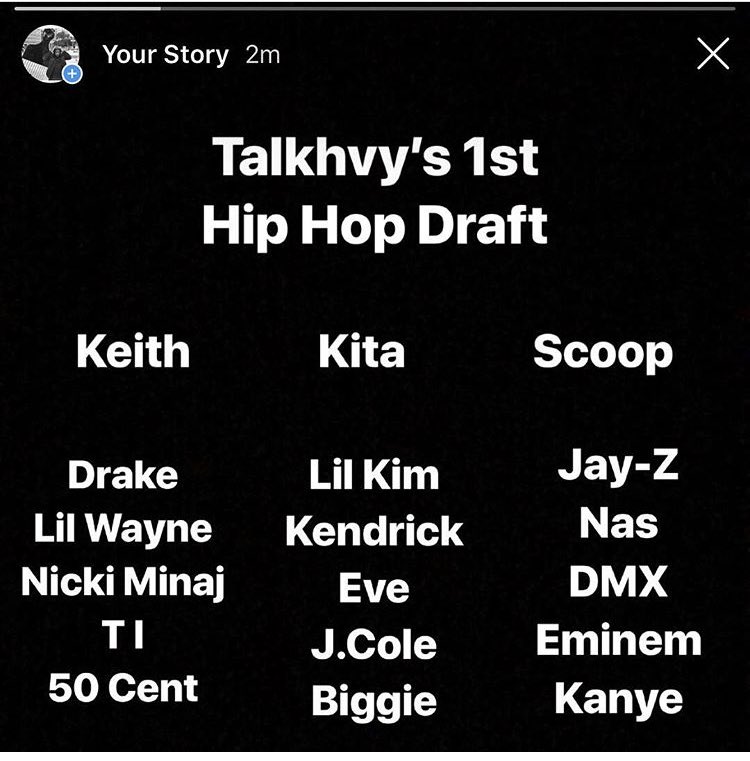@talkhvy put together our first “Hip Hop Draft” we picked 15 rappers 5 from the 90’s 5 from the 2000’s and 5 from the 2010’s who put together the best team@39scoop@krey_wrrongz or@knikidee