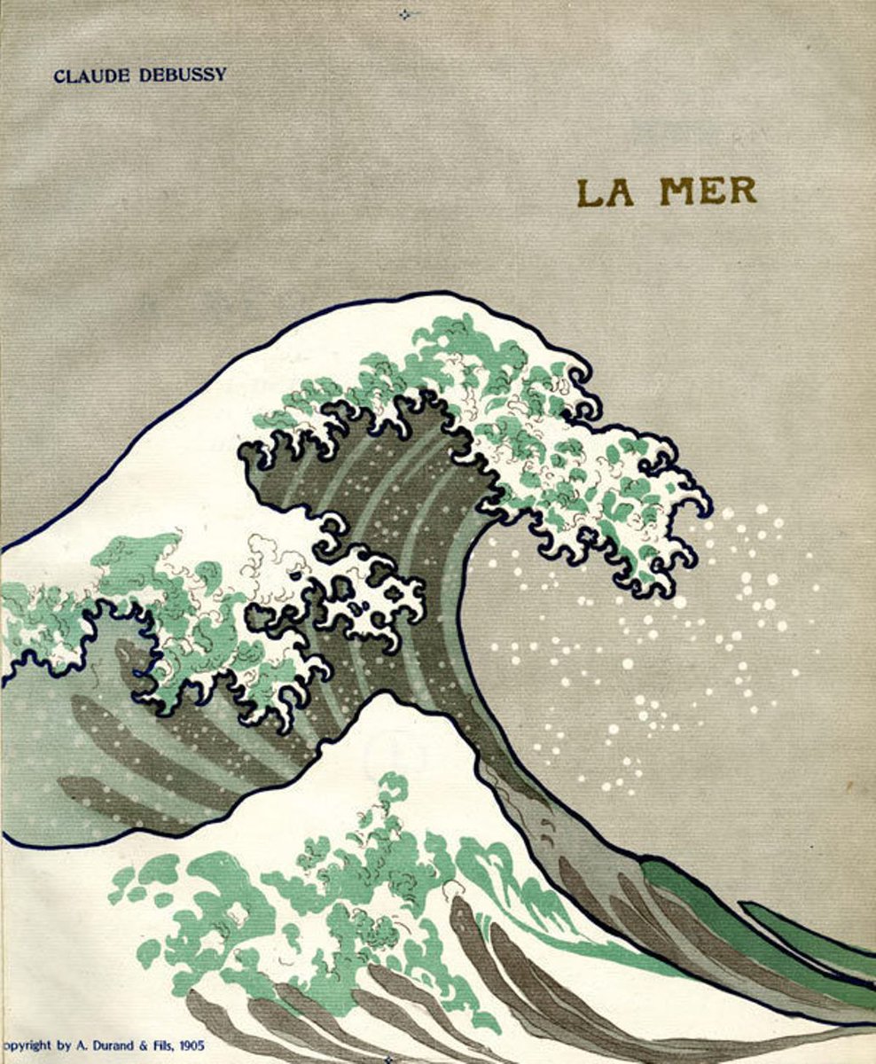 #Debussy 1905 https://youtu.be/SgSNgzA37To 1. De l'aube à midi sur la mer 2. Jeux de vagues 3. Dialogue du vent et de la mer After#Hokusai - Cover of the 1905 first edition of "La Mer" © published by A. Durand & Fils pic.twitter.com/hPmXiuasZp