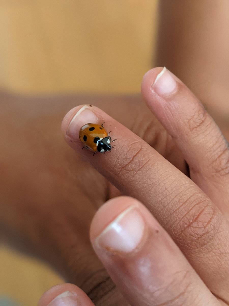 Ladybug ladybug on the tree, Fly down here and sit with me Rest on my hands, I'll count your spots 2,4,6,8 polka dots!