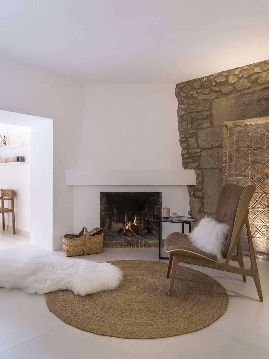 A fireplace isn't the only element that brings warmth to this space. It's