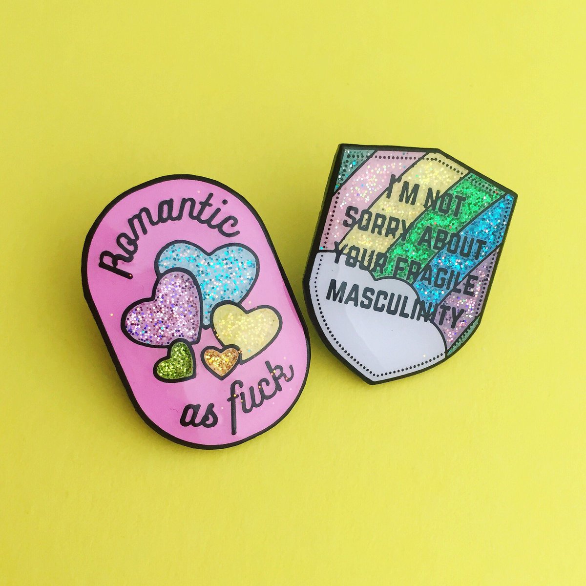 #HOYFC latest GLITTER pins - so much sparkle! http://handoveryourfairycakes.goodsie.com/im-not-sorry-about-your-fragile-masculinity-glitter-enamel-lapel-pin-badge …#feminist#fragilemasculinity#romanticasfuck pic.twitter.com/PASXckhdRw