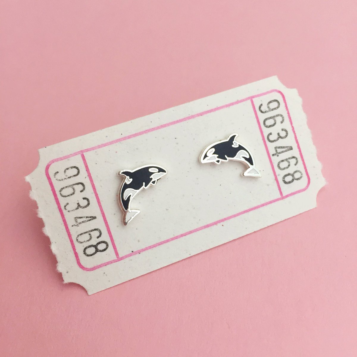 Our new Orca Enamel Stud Earrings are TINY. They're packaged on a carnival ticket inside a cute box! http://handoveryourfairycakes.goodsie.com/orca-enamel-stud-earrings …