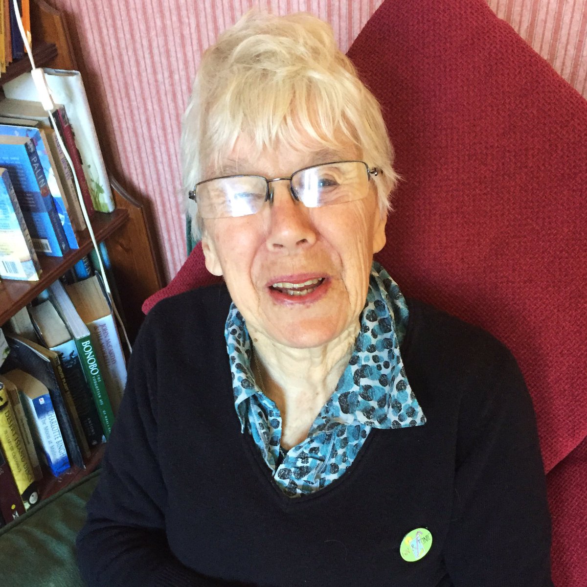 Here's my gran who's just back from wearing her Gin & Tonic Pin to church.
