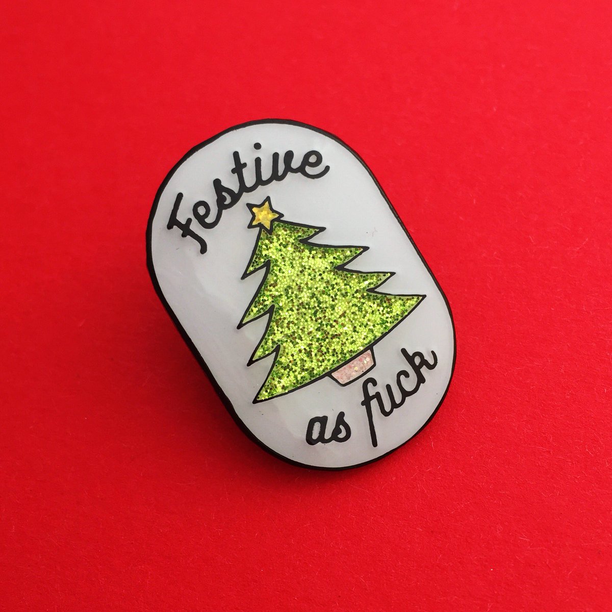 These guys have been popular! Limited to 100 though, so get one quick! http://handoveryourfairycakes.goodsie.com/festive-as-fuck-christmas-glitter-enamel-pin-badge …