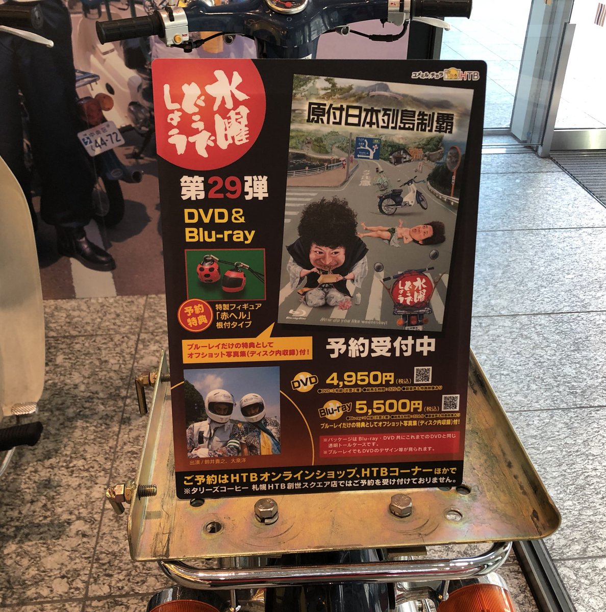 #HTB 1階の#onちゃんテラス で#水曜どうでしょう のカブを展示中だオンε=ヾ( o ▽ n)ノ
