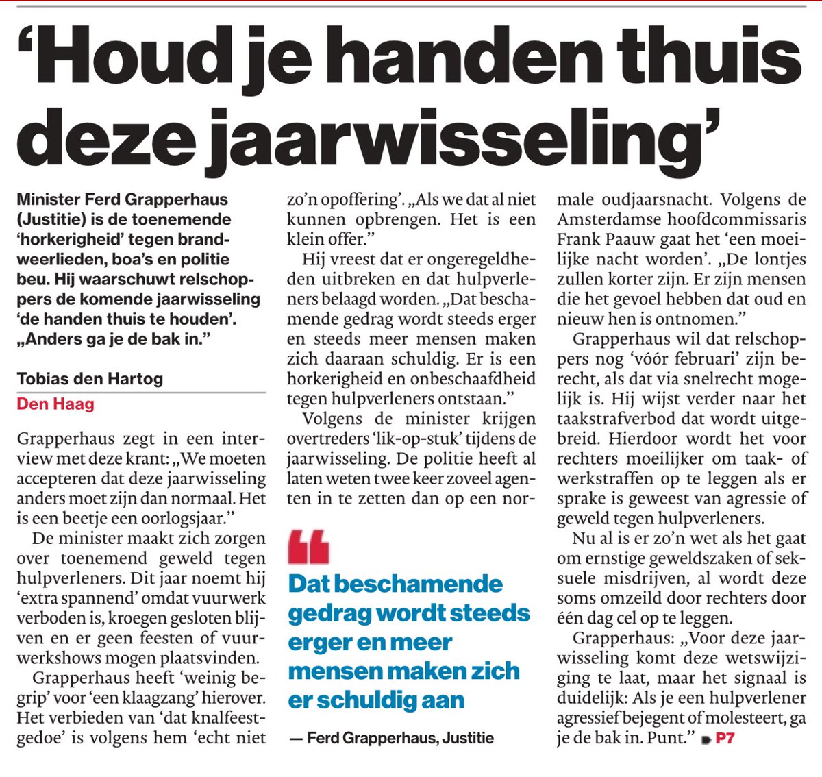 Vandaag is een nieuwe wet aangenomen. Het hinderen van hulpverleners wordt strafbaar. Zij moeten overal hun levensreddende werk kunnen doen. Lees meer op: https://www.rijksoverheid.nl/ministeries/ministerie-van-justitie-en-veiligheid/nieuws/2019/09/24/grapperhaus-maximumstraf-voor-aantal-delicten-omhoog …